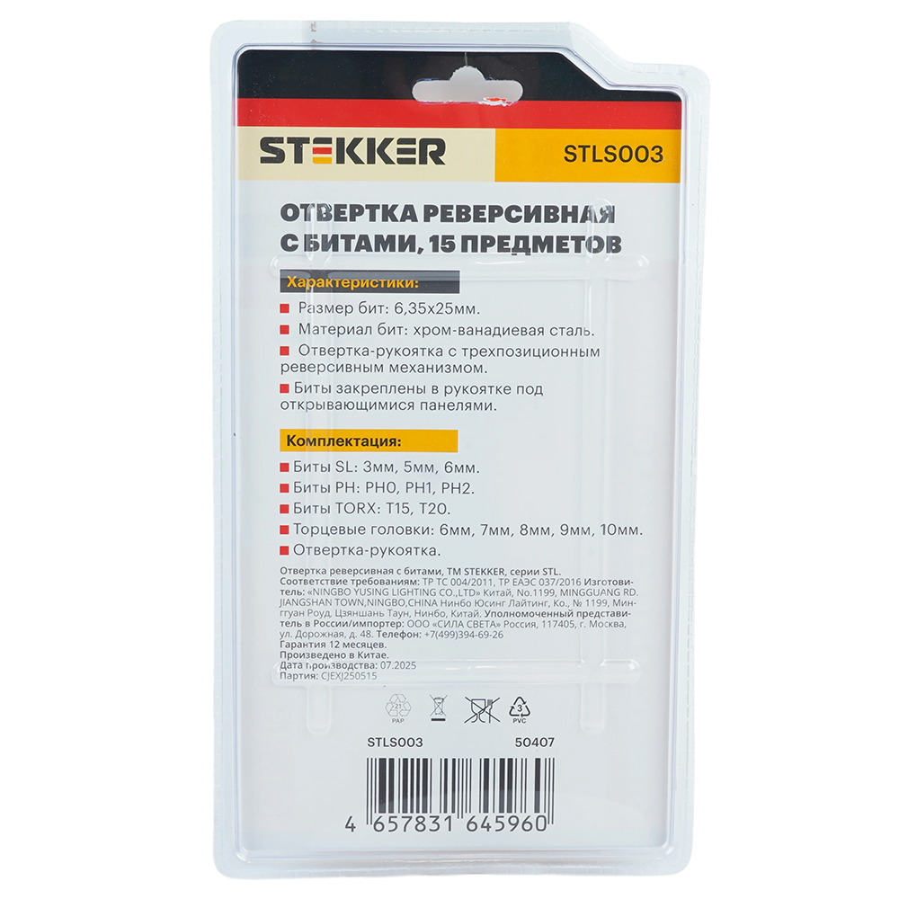 STLS003 Отвертка реверсивная с битами, 15 предметов