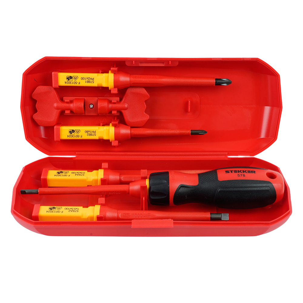 STLS005 Отвертка VDE со сменными битами до 1000В, 8 предметов