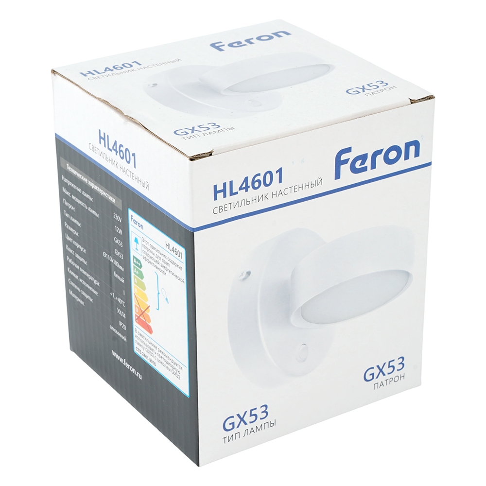 Светильник настенный Feron HL4601 12W, 230V, GX53, белый артикул 51942