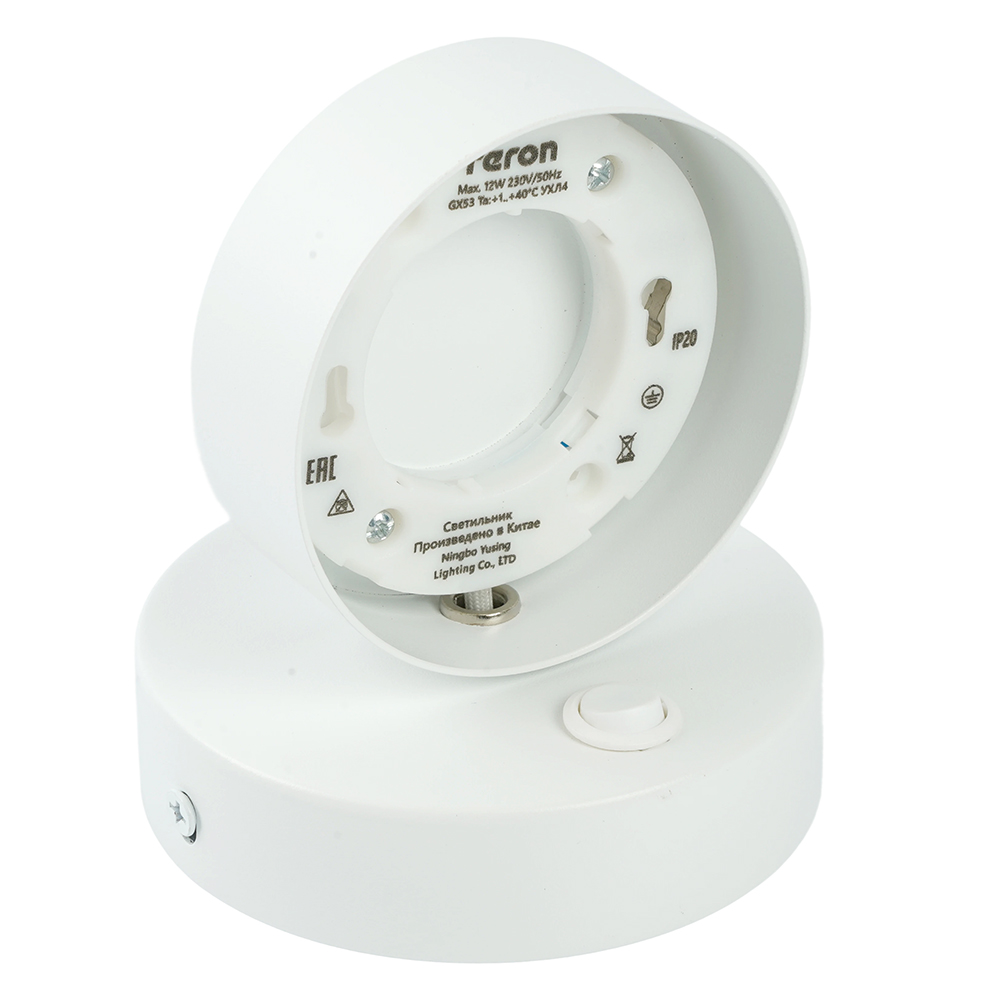 Светильник накладной под лампу, спот (-) FERON HL4601, GX53 12W, 230V, IP20, цвет белый, корпус алюминий, 110*110*100